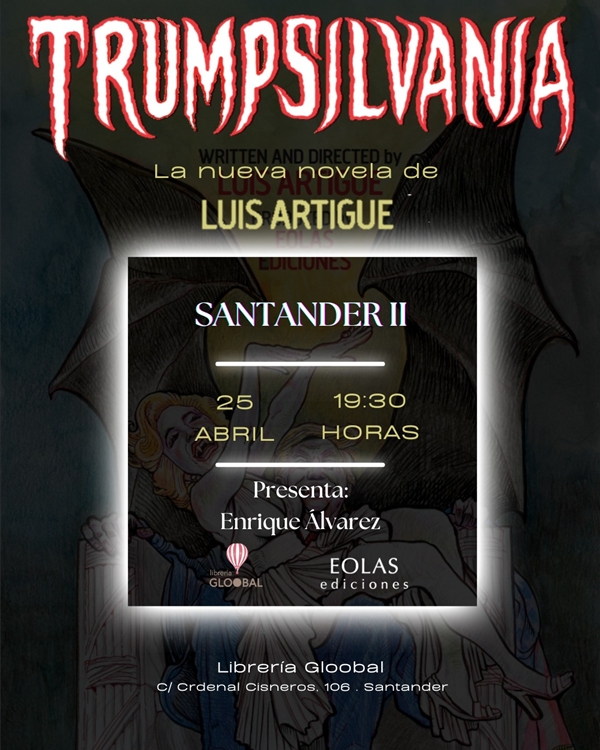 La Librería Gloobal (C/Cisneros 106) acoge la presentación de la nueva novela de Luis Artigue, “Trumpsilvania”. La presentación correrá a cargo de Enrique Álvarez.