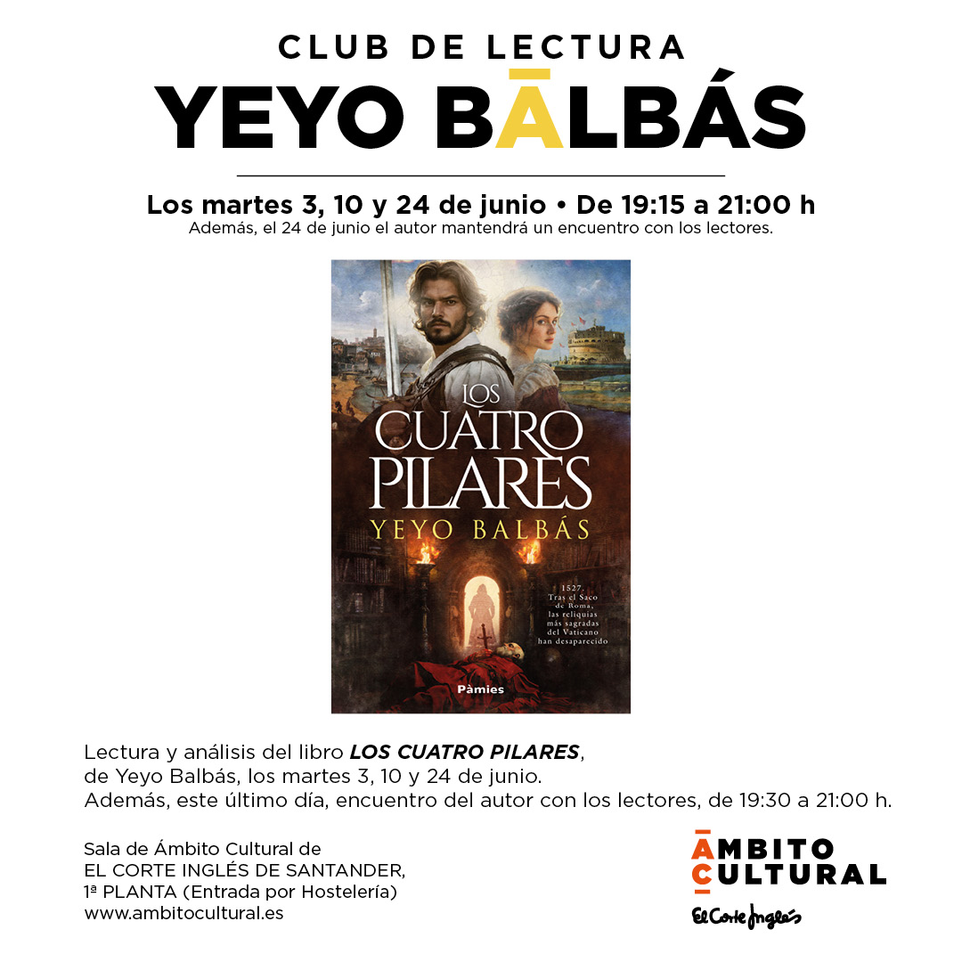 El Club de Lectura de Ámbito Cultural Santander ha elegido el libro “Los cuatro pilares” del autor Yeyo Balbás, editado por la editorial Pámies.