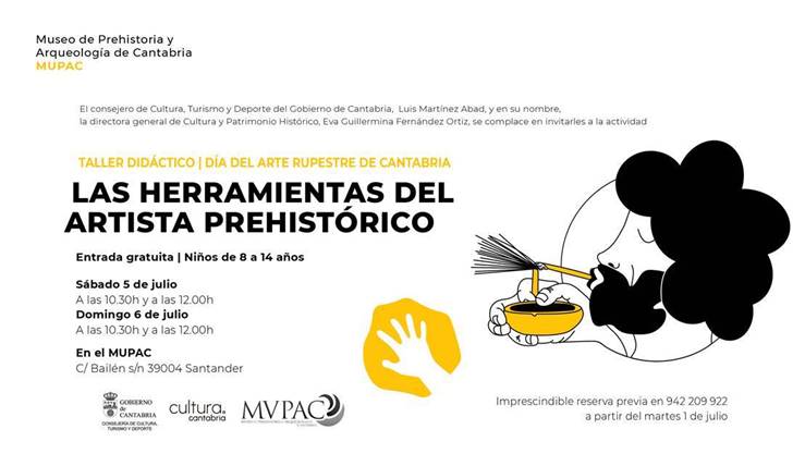 El Museo de Prehistoria y Arqueología de Cantabria (MUPAC) organiza la actividad didáctica "Las herramientas del artista prehistórico" los días 5 y 6 de julio. Dirigida a niñas y niños de 8 a 14 años, se impartirá en dos sesiones cada día; a las 10:30 y 12:00h.
