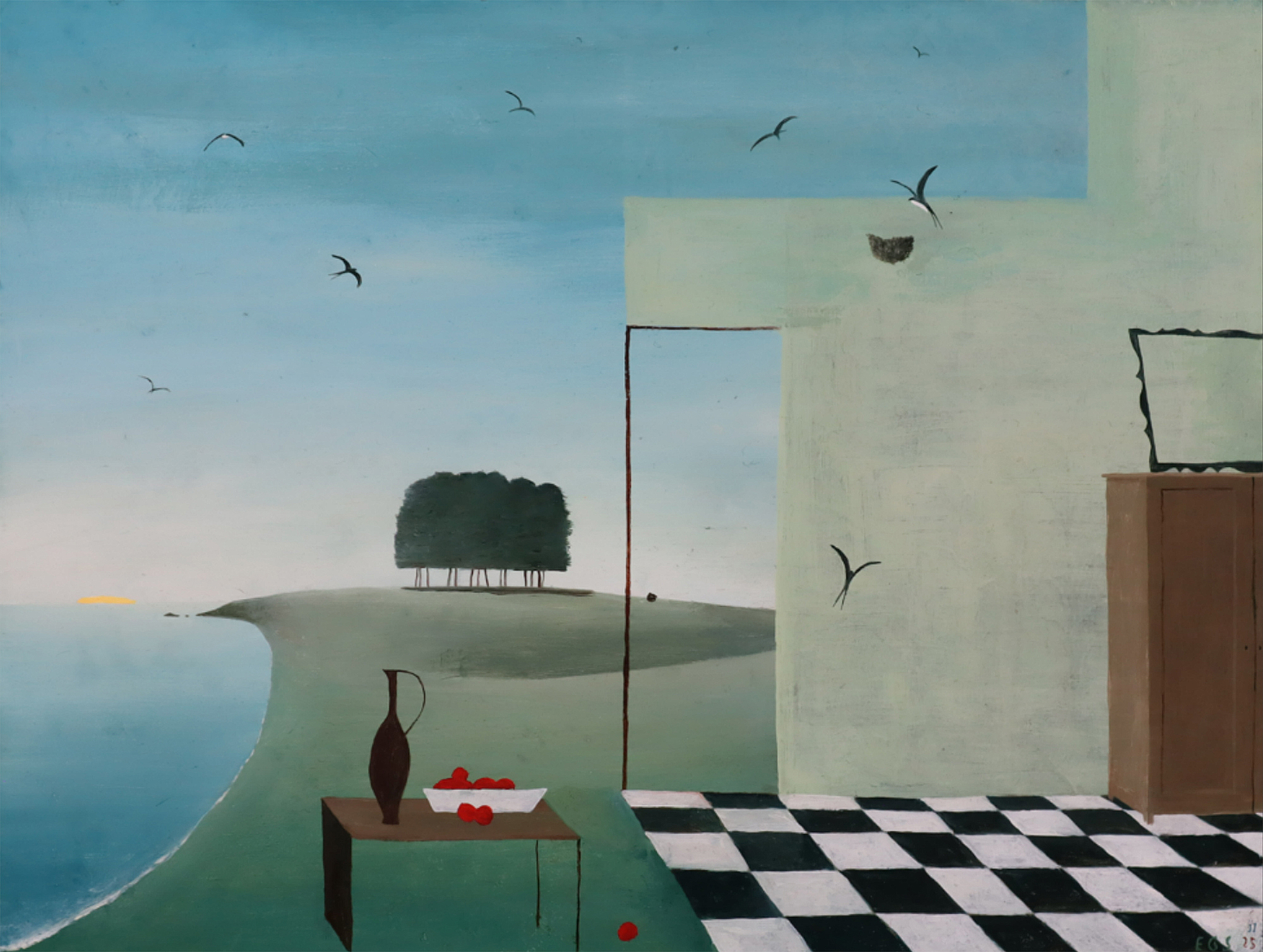 Emilio González Sainz (Torrelavega, 1961), acude fielmente a su cita expositiva con la galería Siboney, -con puntualidad meridiana que se dice-, y no sólo presenta una nueva entrega de su obra reciente –pintada en 2024 y 2025-, sino que comparte sus nuevos hallazgos pictóricos, y un nuevo referente en su imaginario, en ese viaje pictórico norte sur iniciado hace más de tres décadas, desde el territorio de Patinir y Brueghel hacia el orden italiano, y en este acercamiento, la última gran referencia es el pintor que da título a la exposición: PAOLO UCCELLO.