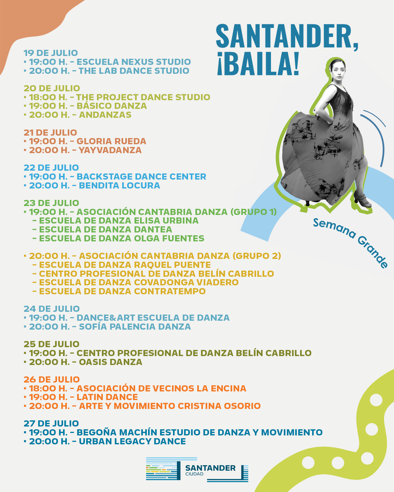 Dentro de la programación de la Semana Grande 2025, el Ayuntamiento de Santander organiza el ciclo “Santander, ¡baila!”, en la que participan las diferentes escuelas de danza de la ciudad.