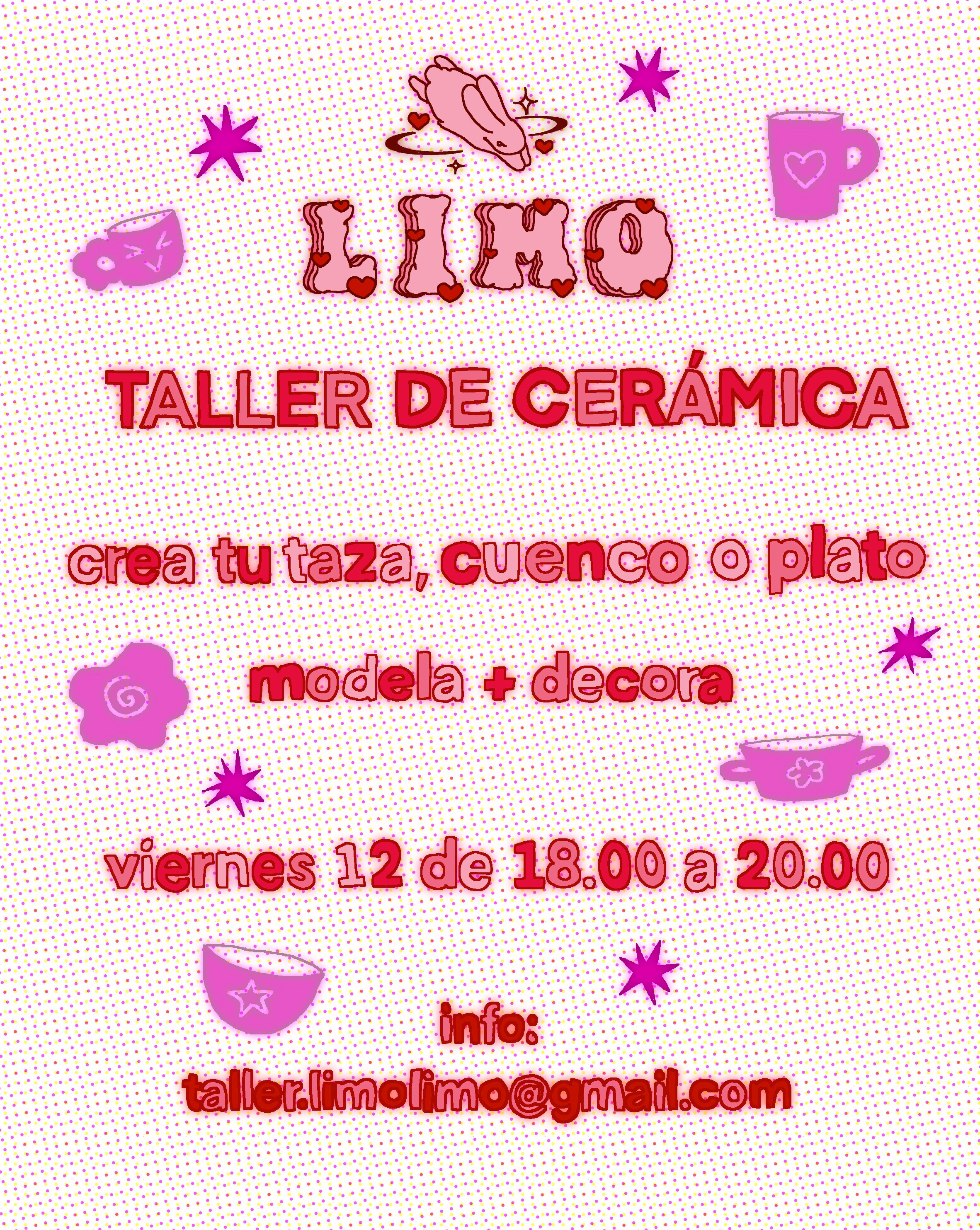 En este taller podrás diseñar y modelar con tus manos una taza, cuenco o un plato, con opción de realizar tu propia idea siempre que encaje en el horario dispuesto para el taller.