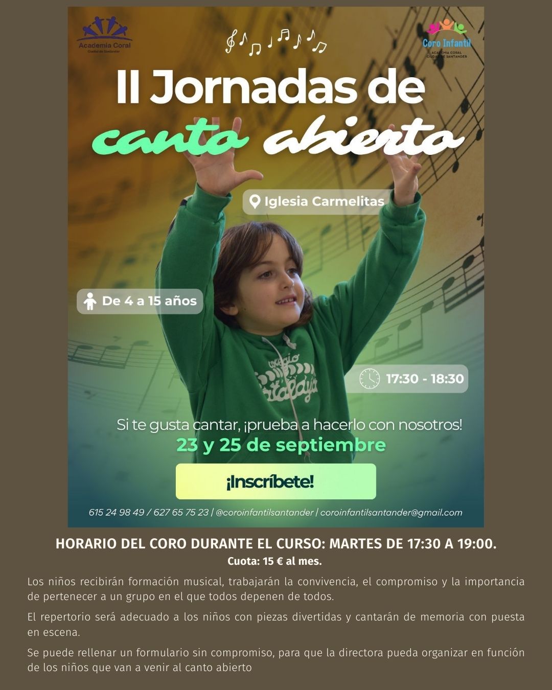 Para asistir se recomienda apuntarse antes en los teléfonos 615249849 o 627657523 o en el correo electrónico coroinfantilsantander@gmail.com