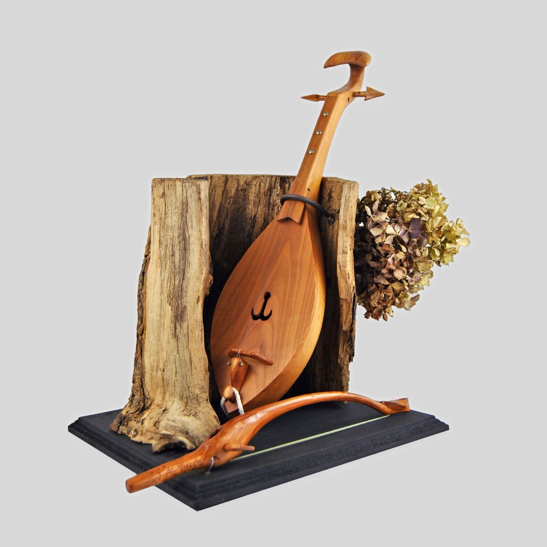 Cada pieza de esta colección es un rabel único, esculpido con dedicación y sensibilidad, donde la forma del instrumento representa a un animal, un objeto o una escena.