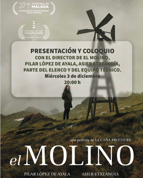El miércoles 3 de diciembre, a las 20:00 horas, el cine Embajadores ofrecerá un pase muy especial de la película “El Molino”. Contará con la presencia de su director Alfonso Cortés-Cavanillas y gran parte del elenco y equipo técnico, incluyendo a sus dos protagonistas: Pilar López de Ayala y Asier Etxeandía. Las entradas están disponibles solo en taquilla y en la web del cine.