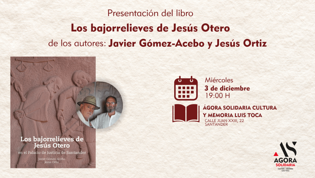El Ágora Solidaria Cultura y Memoria (ASCM) acogerá el próximo 3 de diciembre a las 19:00 horas la presentación del libro “Los bajorrelieves de Jesús Otero”, escrito por Javier Gómez-Acebo y Jesús Ortiz.