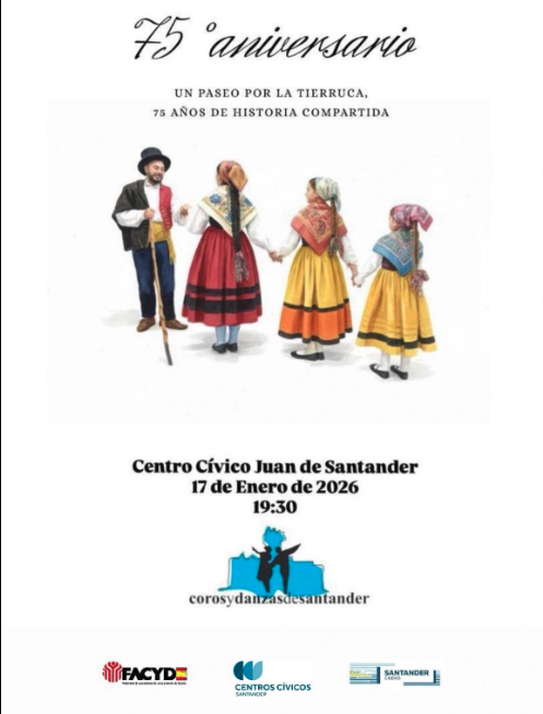 Celebración del 75 Aniversario de Coros y Danzas de Santander el sábado 17 de enero en el Centro Cívico Juan de Santander en Cueto.