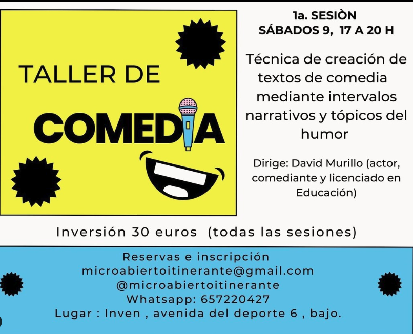 Micro Abierto Itinerante presenta este taller de comedia para aprender, crear y presentar contenidos de comedia.