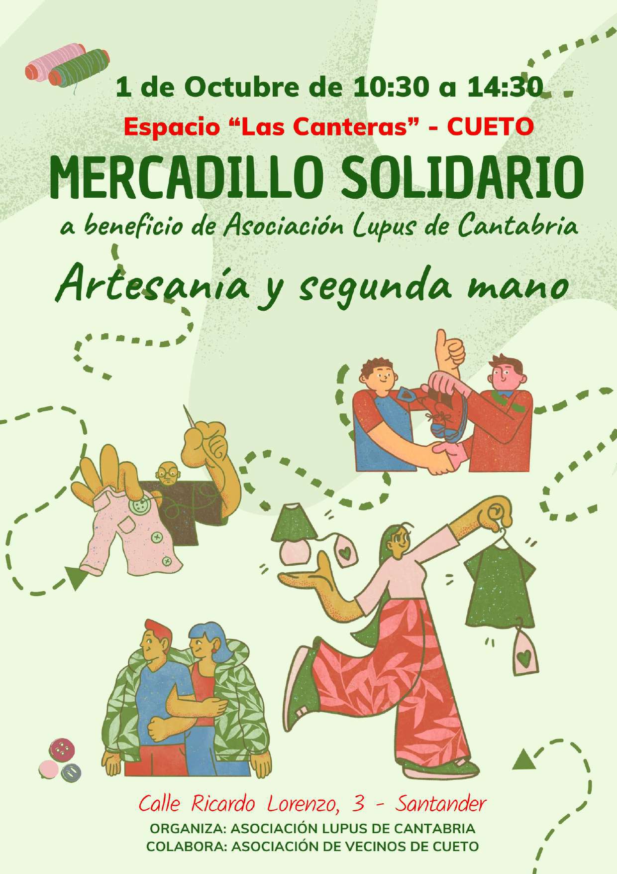 La Asociación Lupus de Cantabria organiza, con la colaboración de la Asociación de vecinos de Cueto, un mercadillo solidario donde podrán encontrarse productos de artesanía y de segunda mano. El 1 de octubre de 10:30 a 14:30 h.