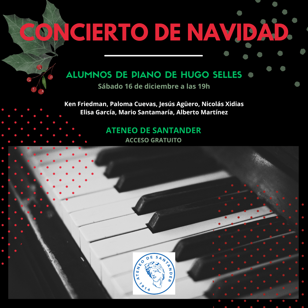 Los alumnos de piano de Hugo Selles ofrecen un concierto de Navidad en el Ateneo de Santander el sábado 16 de diciembre a las 19:00h.