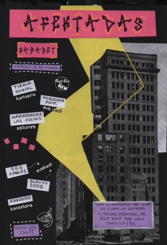 Afectadas Kabaret en la sala Rock Beer the New con los conciertos de Tirria Sozial (Cantabria), Misoginia Punk (Euskadi), Marikonadas las Justas (Asturias), 555 Kables (Euskadi), SLAVVV3005 (Euskadi), Esgoooo (Barcelona).