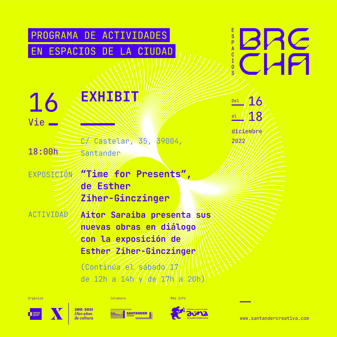 Durante todo el fin de semana los espacios de arte contarán con diferentes propuestas dirigidas al público en general. La galería Exhibit, situada en la calle Castelar, completará su exposición “Time for Presents”, de Esther Ziher-Ginczinger con una actividad en la que Aitor Saraiba presenta sus nuevas obras en diálogo con la muestra de la artista holandesa.