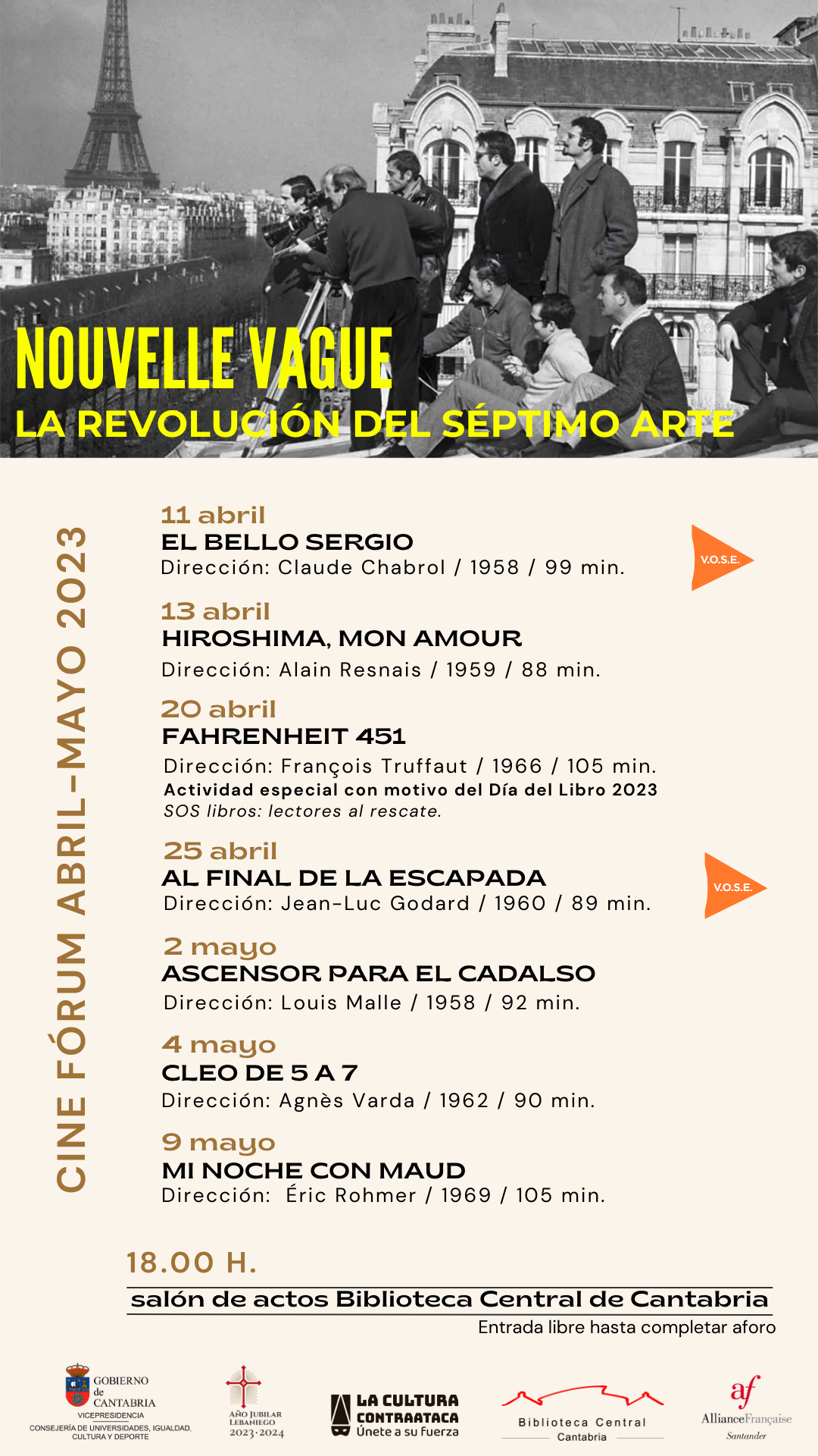Entre abril y mayo la BCC programa un ciclo dedicado al movimiento fílmico más amado, impulsor del cine de autor; que transgredió cánones y cultivó el gusto estético, pero de corte realista y auténtico, la “Nouvelle Vague”. En este ciclo de proyecciones colabora la Alianza Francesa de Santander. La profesora Christina Lihme será la encargada de participar en las presentaciones y coloquios de algunas de las películas que integran el programa del ciclo.