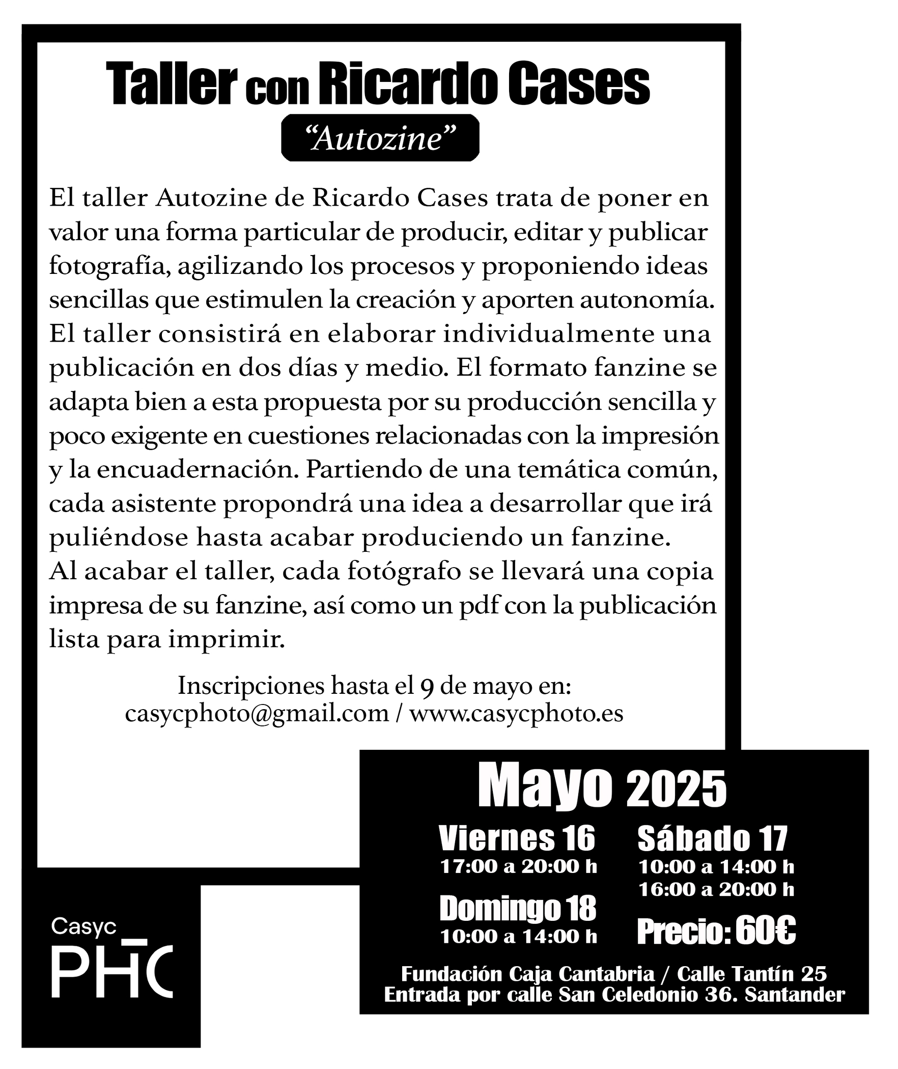 Inscripciones hasta el 9 de mayo en: casycphoto@gmail.com