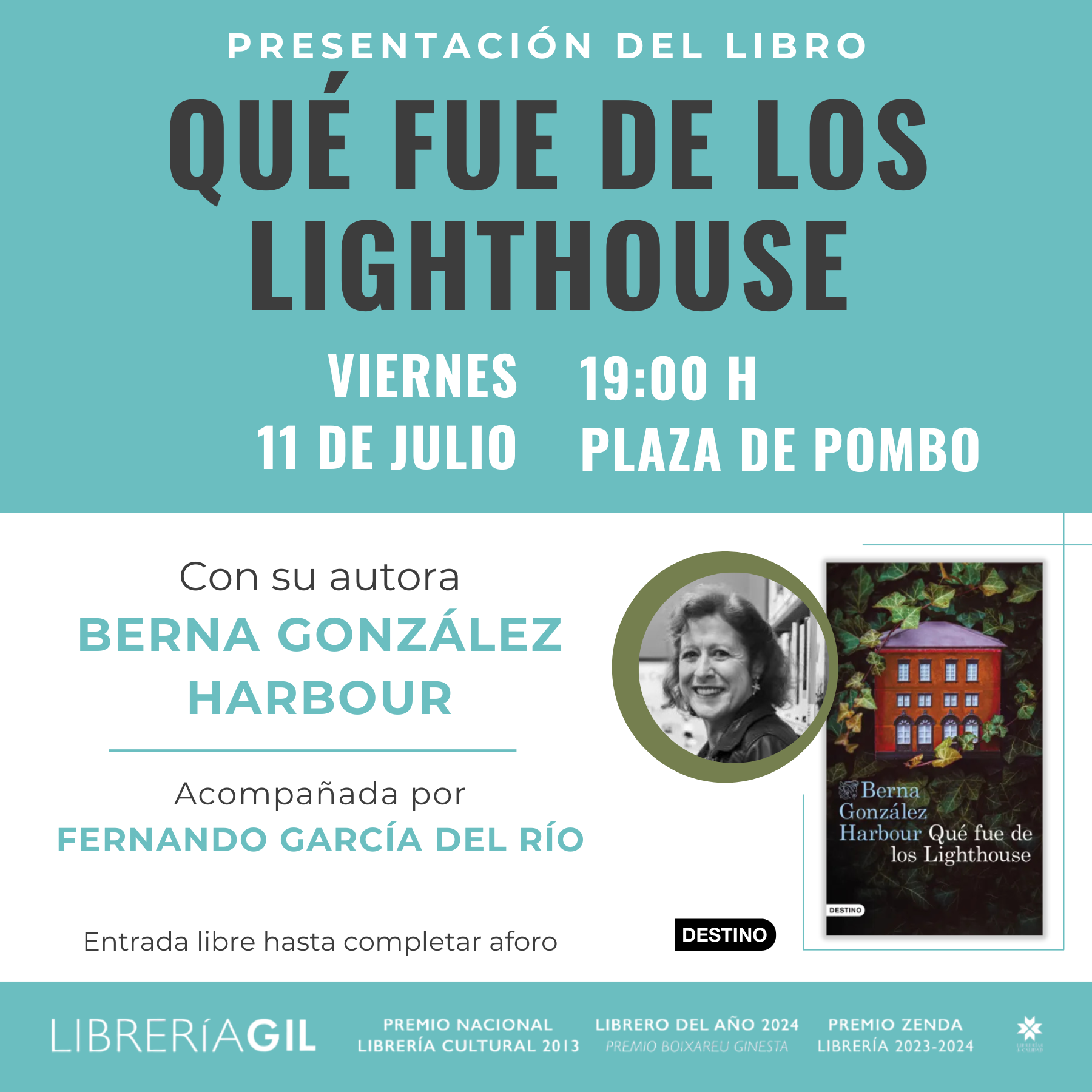 El viernes 11 de julio, a las 19:00 h. Berna González Harbour estará en Gil para presentar de "Qué fue de los Lighthouse". La escritora estará acompañada por Fernando García del Río. (Editorial Destino).