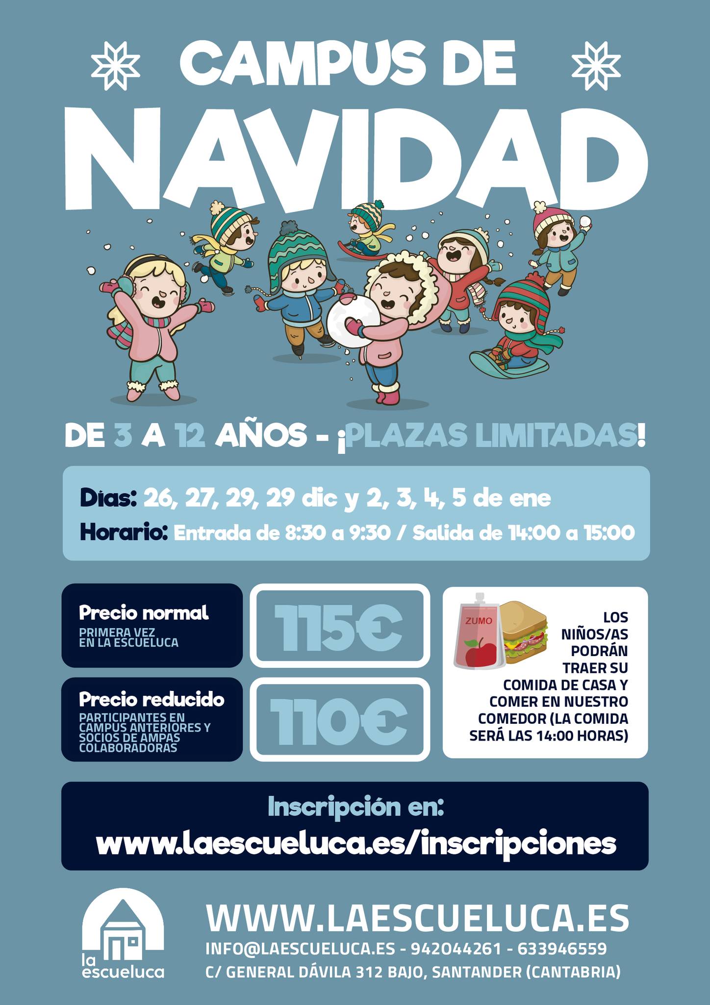 Campus de Navidad en La Escueluca, para niñas y niños de 3 a 12 años, del 26 al 29 de diciembre y del 2 al 5 de enero.