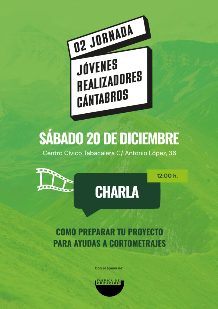 Las Jornadas de Jóvenes Realizadores Cántabros organizan una charla formativa para mejorar proyectos de cara a subvenciones. La actividad es abierta al público de forma gratuita y se realizará el sábado 20 de diciembre a las 12:00 en la Fábrica de Creación en el Centro Cívico Tabacalera (C/ Antonio López, 36).