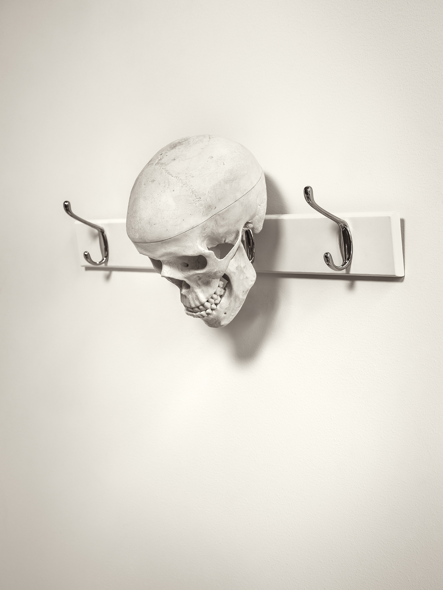 En su regreso a Santander el artista muestra imágenes como la superposición de una partitura y un telar, el perchero con calavera, o la golondrina insertada en la diana, entre otras conexiones insólitas entre elementos naturales y objetos, en una invitación a ver el mundo con otros ojos.
