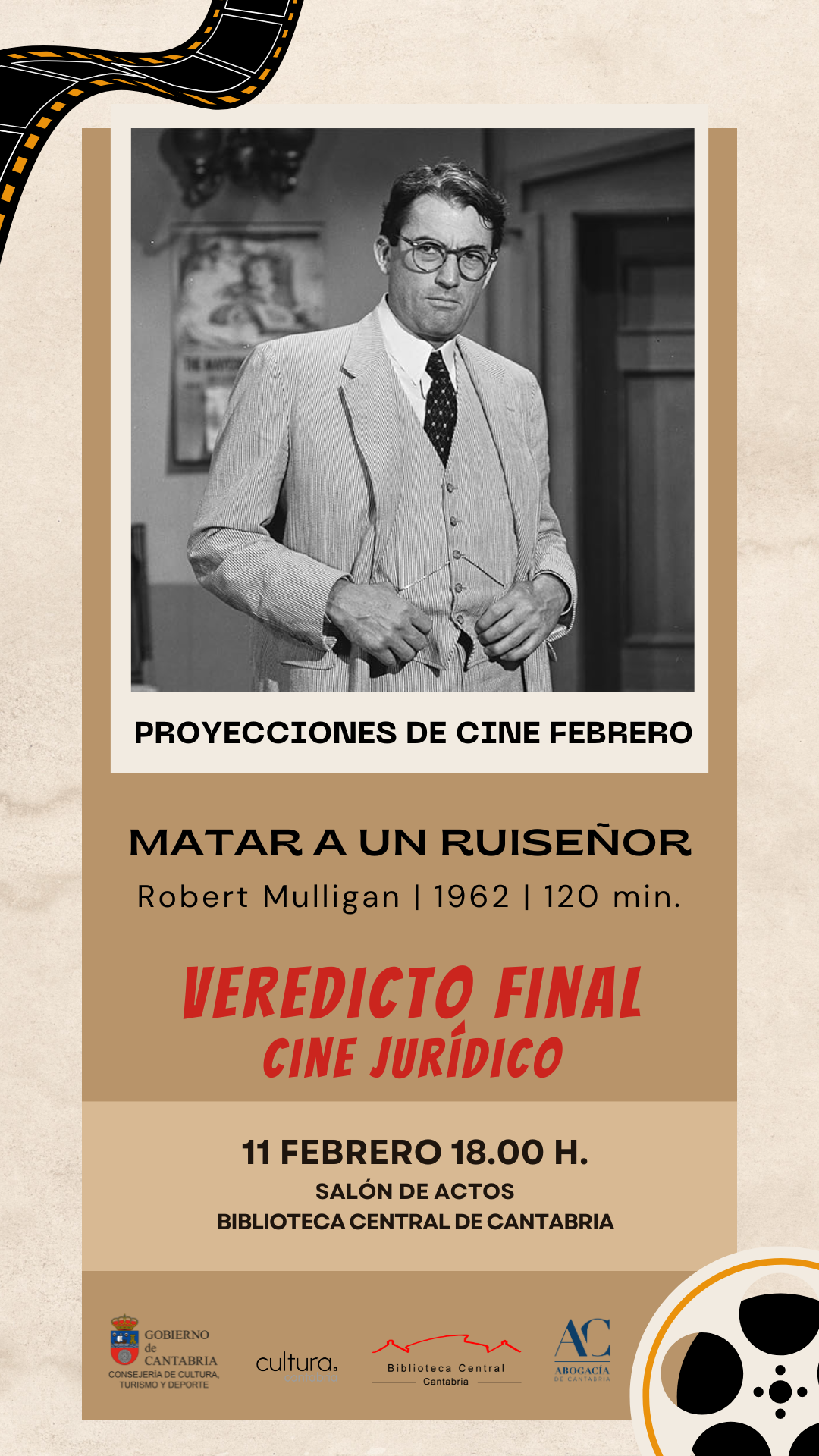 Con motivo del Día Internacional del Abogado, la Biblioteca Central de Cantabria organiza para el mes de febrero un ciclo de proyecciones sobre temática jurídica que incluye 6 películas y que cuenta con la colaboración del Colegio de Abogados de Cantabria.