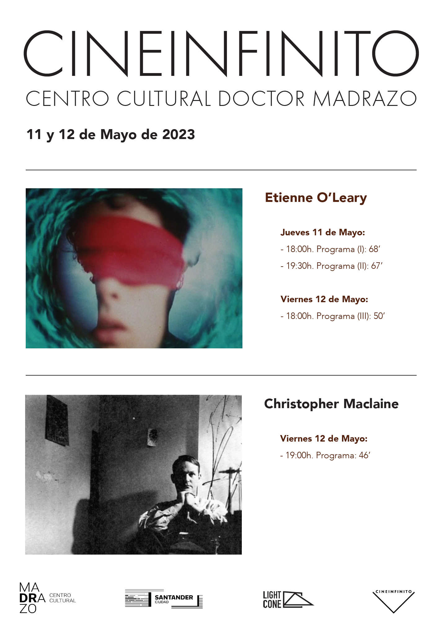 Los días 11 y 12 de mayo, a las 18:00h, Cineinfinito prosigue el ciclo de cine experimental con proyecciones dedicadas a los cineastas Etienne O´Leary y Christopher Maclaine.