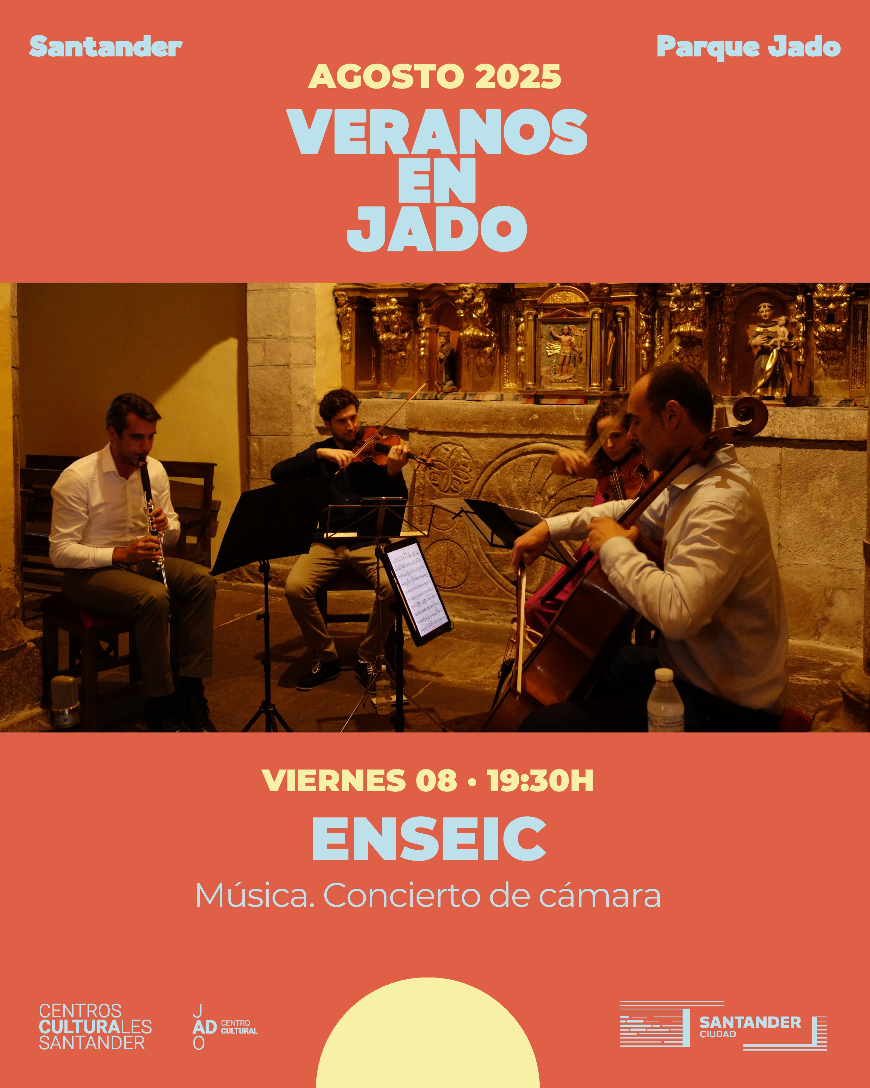 El viernes 8 de agosto a las 19:30h tendrá lugar un concierto de cámara a cargo del Ensemble Instrumental de Cantabria (ENSEIC), grupo formado por intérpretes con sólida trayectoria. Ofrecerán un concierto para oboe, viola y clarinete, con obras de B. Britten, R. Gliére, R. Clarke, R. Kókai.