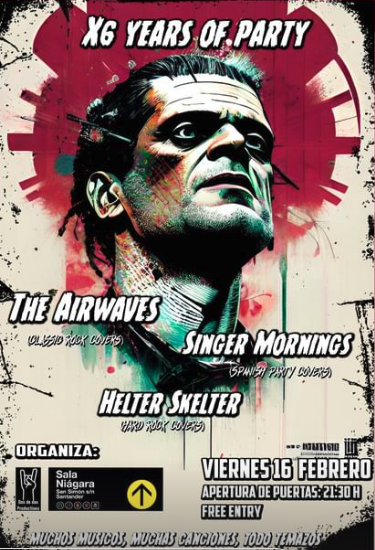 Versiones de rock and roll con The Airwaves el viernes 16 de febrero a las 21:30 horas. Estarán acompañados por Singer Mornings y Helter Skelter, que ofrecerán versiones de hard rock.