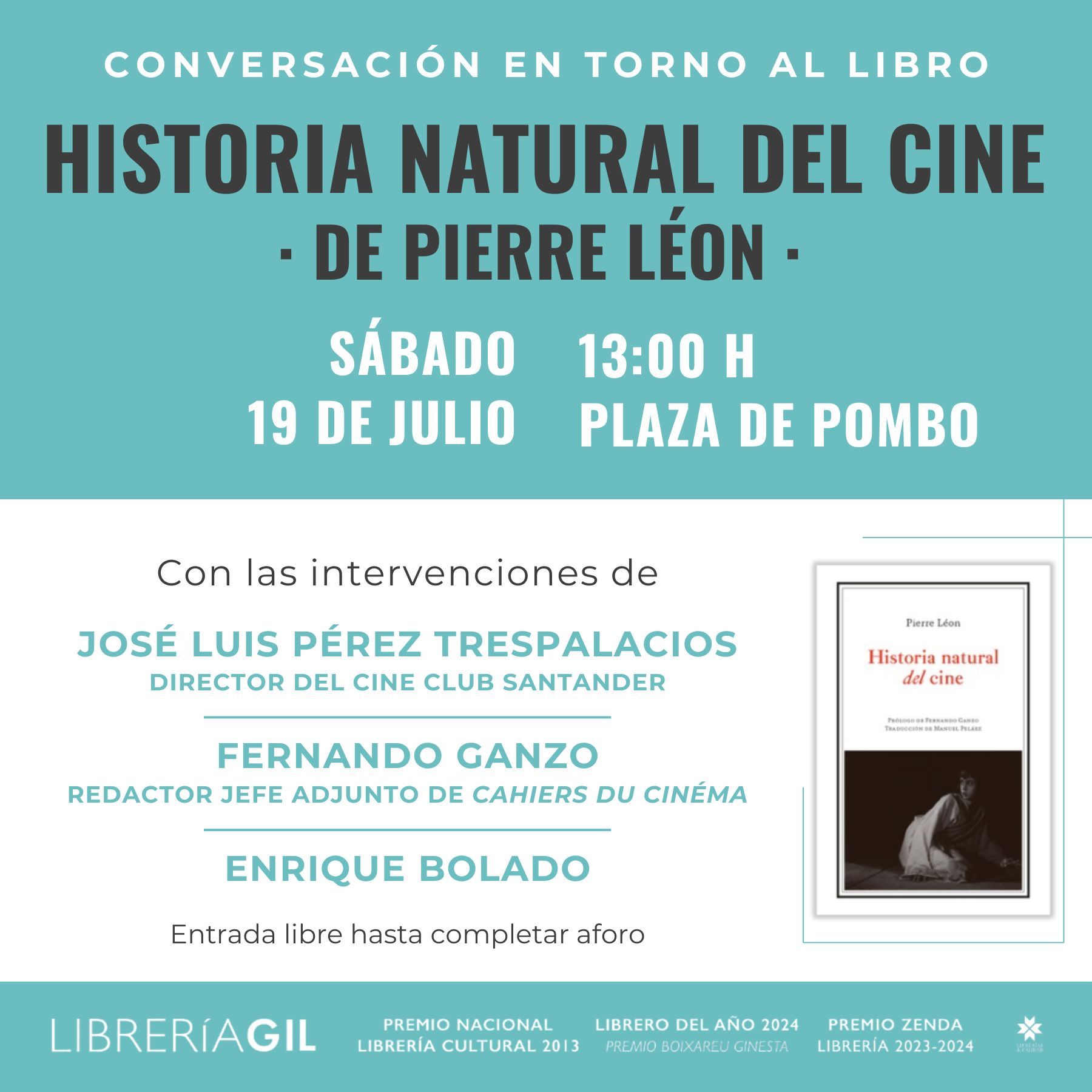 El sábado 19 de julio, a las 13:00 h. la Librería Gil acoge una conversación en torno al libro "Historia natural del cine", de Pierre Léon. Con las intervenciones de José Luis Pérez Trespalacios, director del Cine Club Santander, Fernando Ganzo, redactor jefe adjunto de Cahiers du Cinéma y Enrique Bolado. Editorial Athenaica.