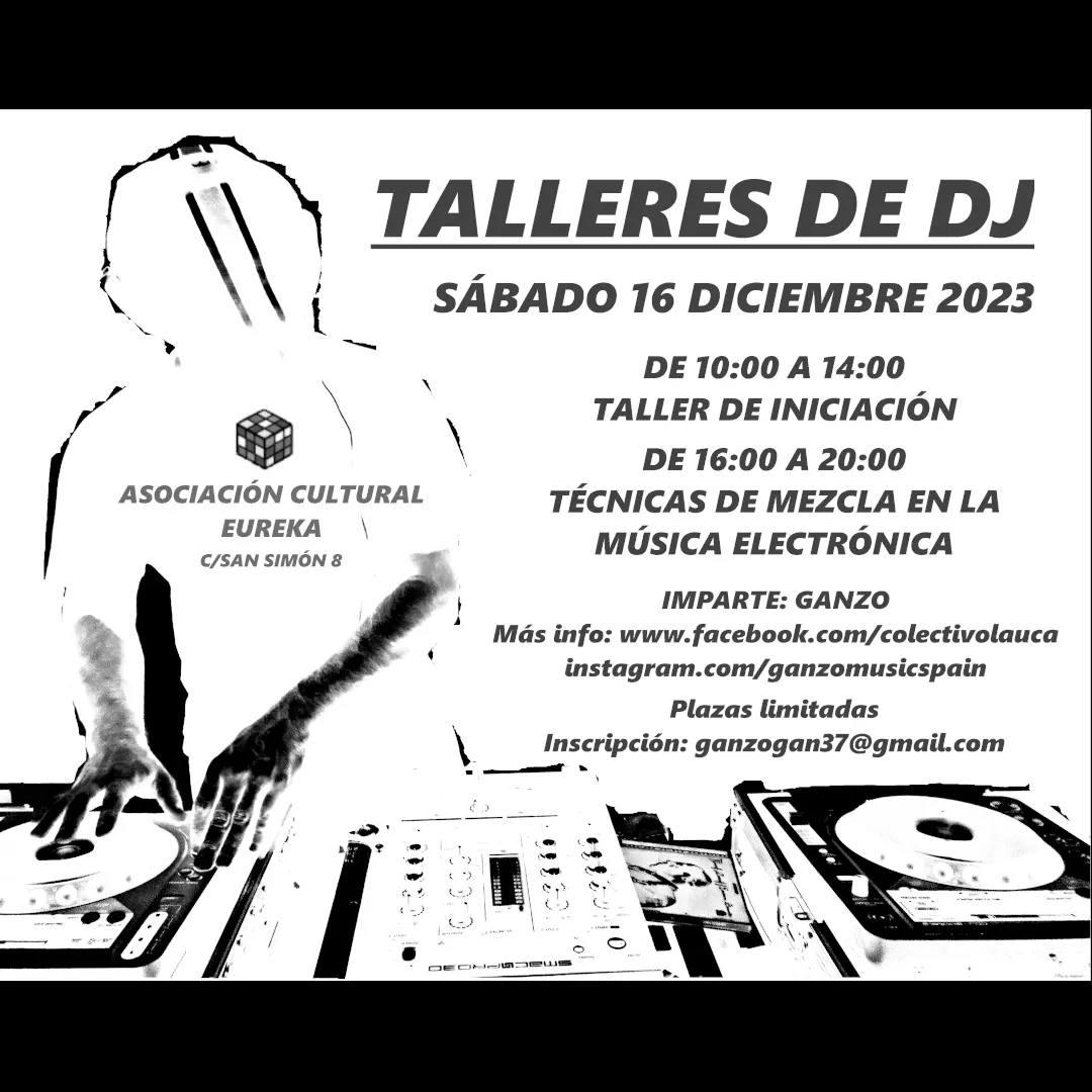 El sábado 16 de diciembre de 10 a 14h Ganzo estará en el Centro Cultural Eureka impartiendo un taller de Iniciación al Dj para aquellas personas que quieran aprender a mezclar a la antigua usanza sin importar el estilo o estilos que se quieran mezclar. No se necesitan conocimientos previos.
