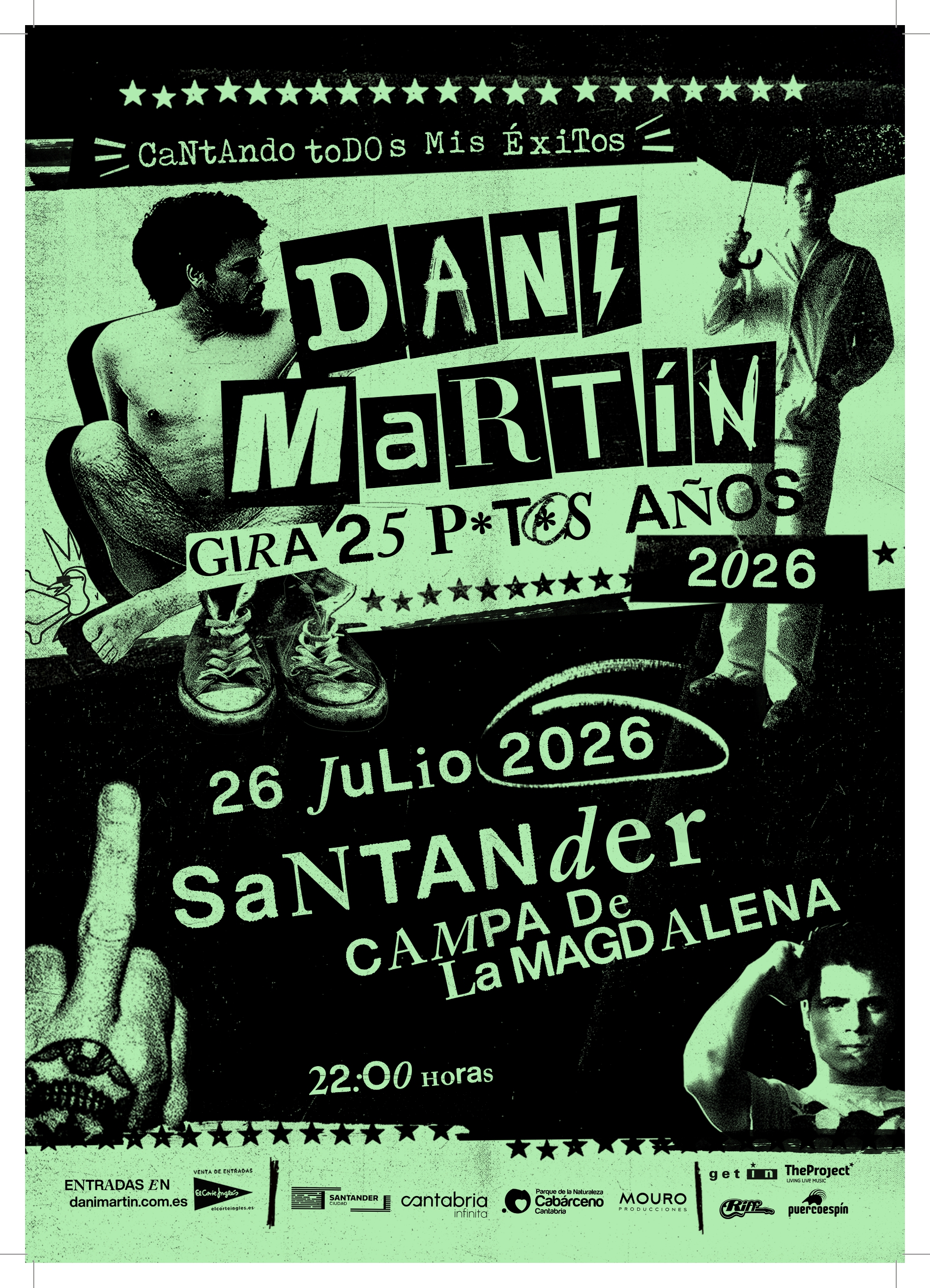 Dani Martín desembarcará el domingo 26 de julio de 2026 en la Campa de La Magdalena de Santander dentro de su ‘Gira 25 p*t*s años’, con la que el artista madrileño está batiendo todos los récords. El concierto en Cantabria, inicialmente previsto para el viernes 24 de julio, cambia de fecha debido a la programación de las fiestas de la Semana Grande de Santander.