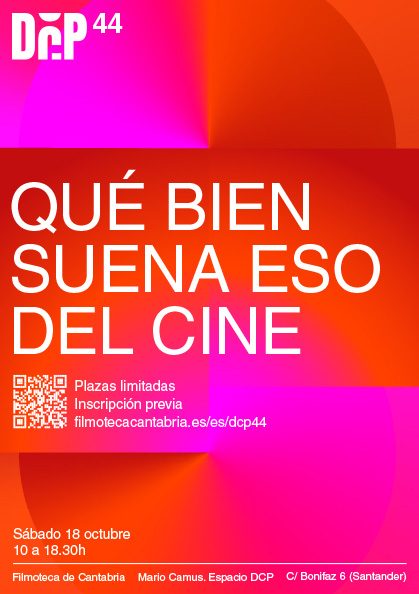 El DCP44 se celebrará en la sede de la Filmoteca de Cantabria de 10 a 13.30 horas y de 16 a 19 horas del sábado 18 de octubre y la inscripción se debe realizar de manera previa en https://filmotecacantabria.es/es/dcp44/ .