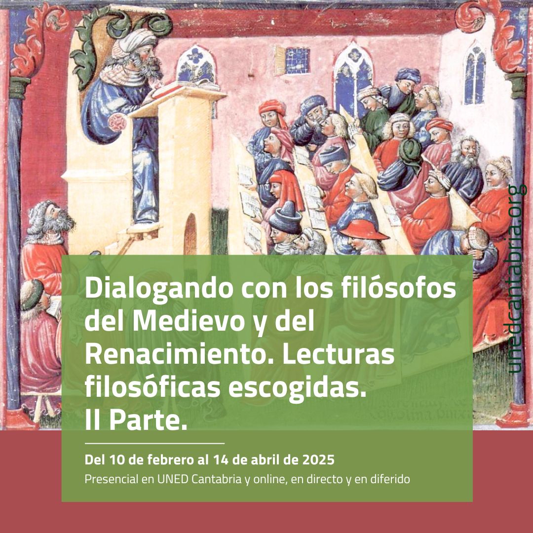 Carmen Dolby impartirá en Santander el curso Dialogando con los filósofos del Medievo y del Renacimiento. Lecturas filosóficas escogidas. II Parte, que tendrá lugar los lunes del 10 de febrero al 14 de abril de 2025, en horario de 10:00 a 12:00 h.
