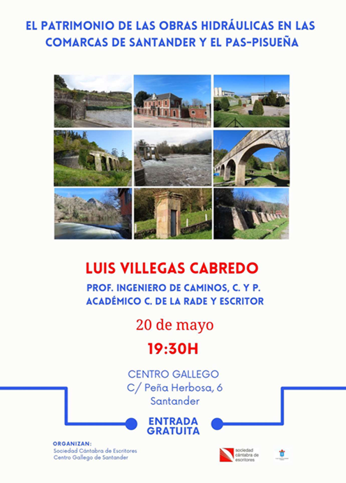 El Centro Gallego de Santander acoge la conferencia “El Patrimonio de las Obras Hidráulicas en las comarcas de Santander y del Pas-Pisueña” a cargo de Luis Villegas. Será el 20 de mayo a las 19:30h, con entrada libre hasta completar el aforo.