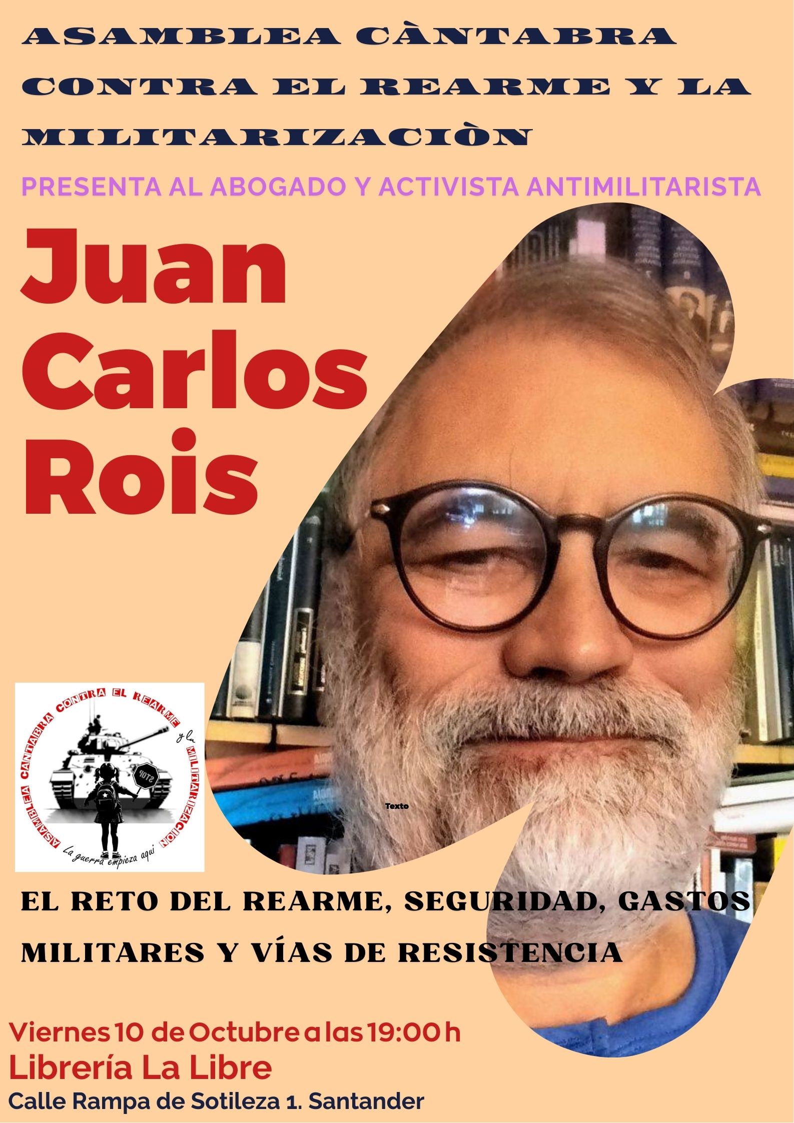 El CSA La Libre acoge la charla "El reto del rearme, seguridad, gastos militares y vías de resistencia", a cargo del abogado y activista antimilitarista Juan Carlos Rois. La cita es el viernes 10 de octubre a las 19:00h, con entrada libre hasta completar el aforo.