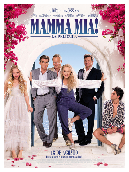 Versión cinematográfica del popular musical de ABBA. Una joven (Amanda Seyfried) que ha crecido en una pequeña isla griega, ha sido educada por una madre rebelde y poco convencional (Streep), que siempre se ha negado a revelarle la identidad de su padre. Cuando, por fin, parece que la joven está a punto de saberlo, aparecen tres posibles candidatos (Brosnan, Firth y Skarsgard)