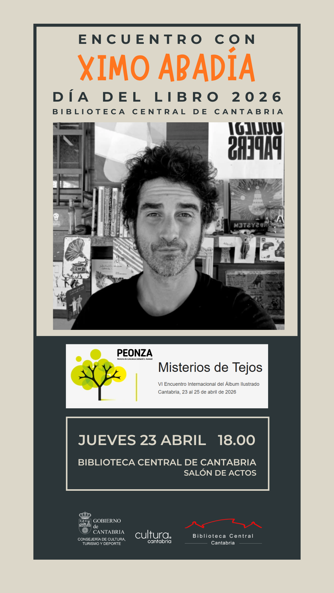 La Biblioteca Central de Cantabria acoge, dentro de la programación del Día del Libro, un encuentro con el ilustrador y autor de libros ilustrados Ximo Abadía. La actividad se realiza en colaboración con el Colectivo Peonza con motivo del 6º Encuentro Internacional del Libro Ilustrado.