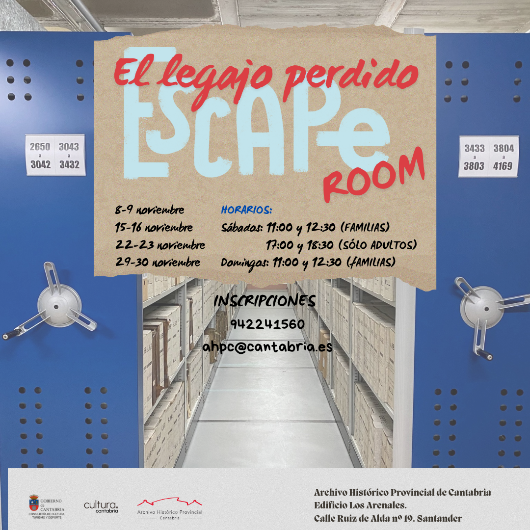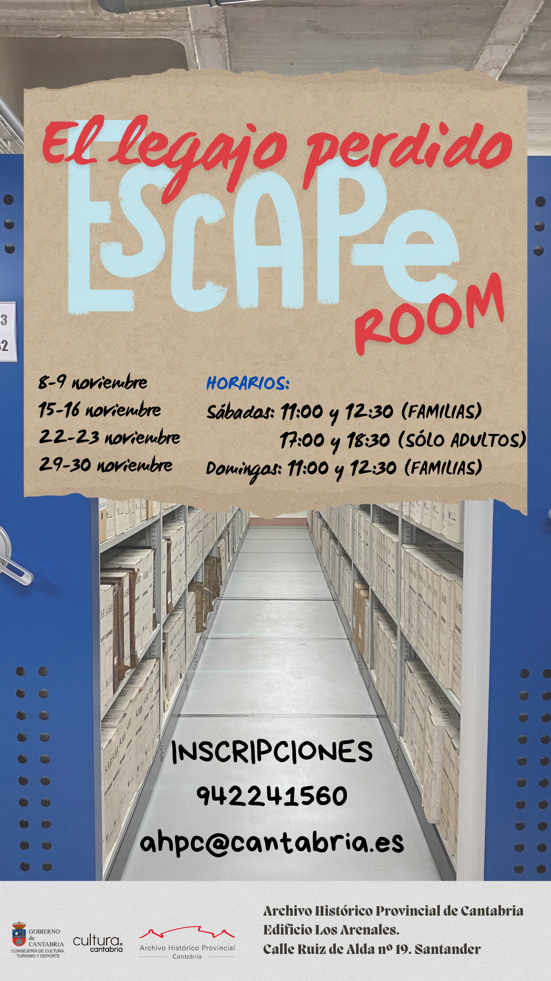 El Archivo Histórico Provincial organiza este mes de noviembre el Escape Room “El legajo perdido”. Los participantes deberán meterse en el papel de un archivero para resolver un enigma realizando la actividad en el espacio propio del AHPC. Habrá un punto de partida y un punto de salida.
