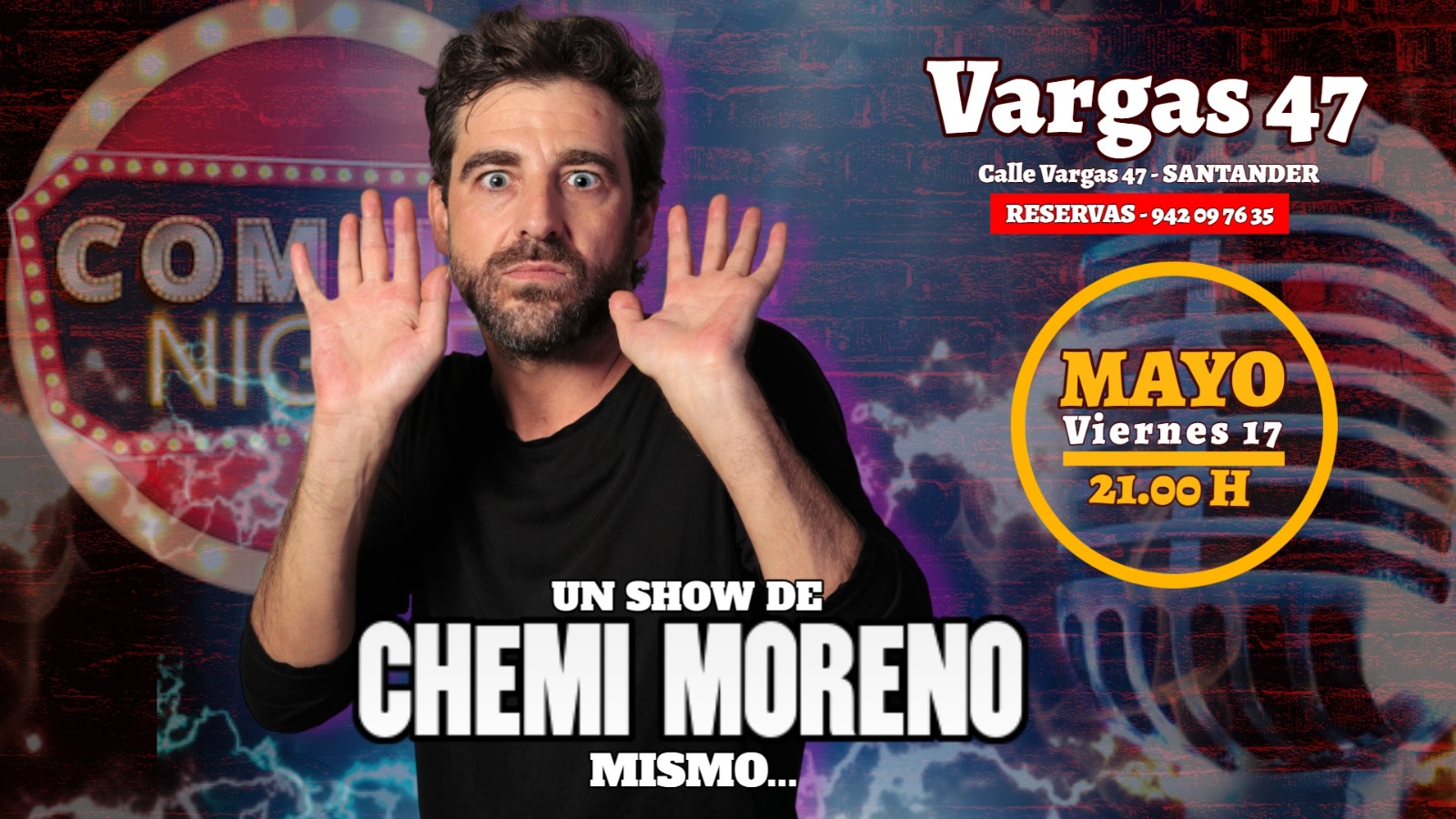 El viernes 17 de mayo, a partir de las 21 horas, tendrá lugar un nuevo espectáculo de comedia, gratuito, en la cafetería Vargas 47, de la mano del cómico madrileño Chemi Moreno.