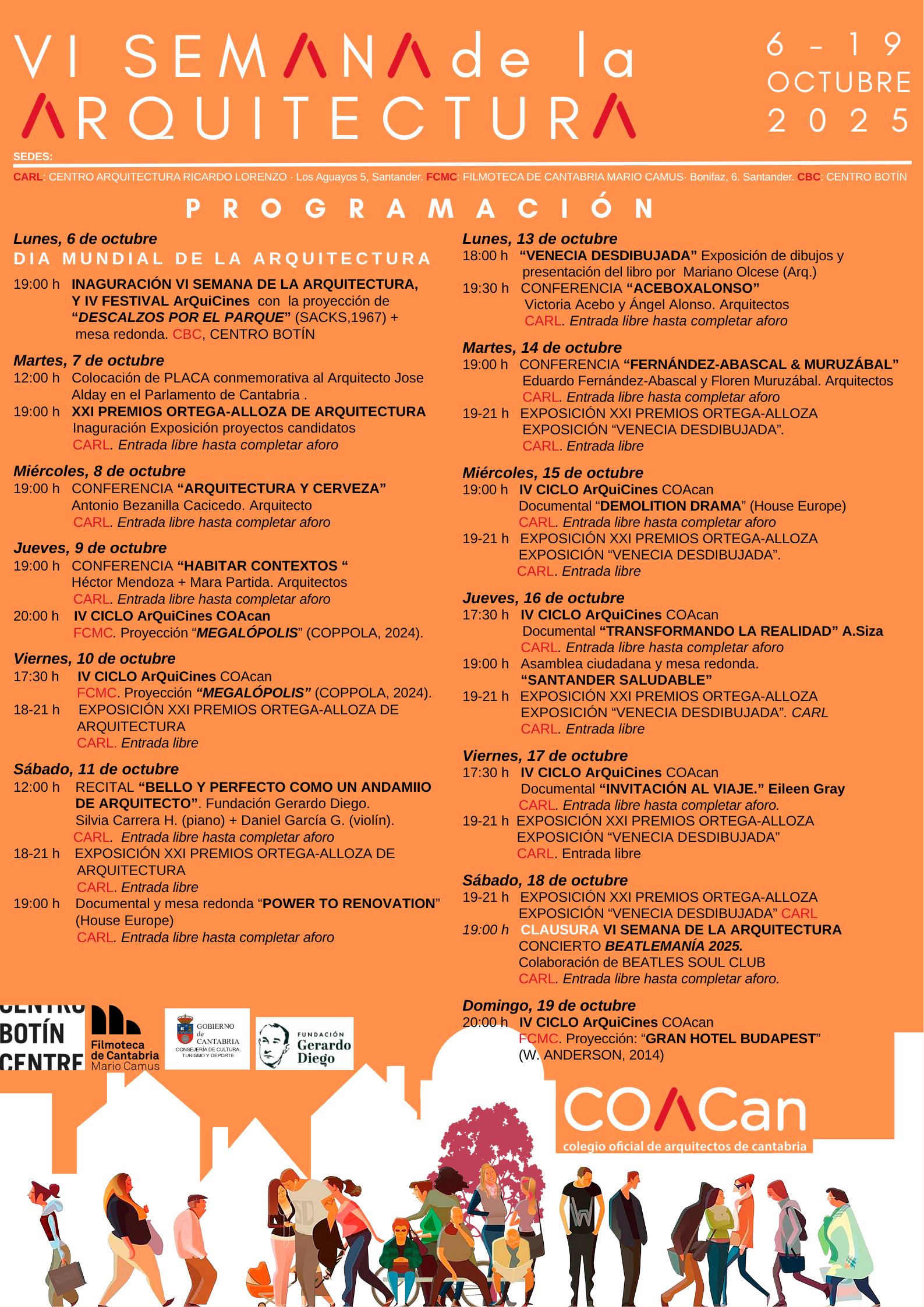 El Colegio Oficial de Arquitectos de Cantabria, COACan, celebra la sexta edición de su Semana de la Arquitectura. Se trata de una iniciativa que pretende acercar la arquitectura a la sociedad, fomentar el intercambio de experiencias y proyectos entre profesionales y poner en valor el patrimonio arquitectónico más cercano.
