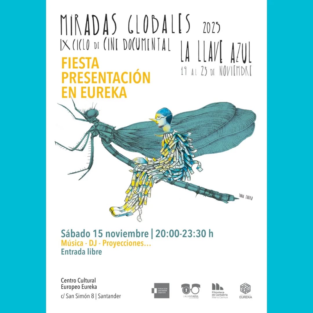 El Centro Cultural Europeo Eureka acoge la fiesta de presentación de la novena edición del Ciclo de Cine Documental “Miradas Globales” que organiza la asociación cultural La Llave Azul y financia la Fundación Santander Creativa (FSC) a través de su convocatoria de subvenciones.