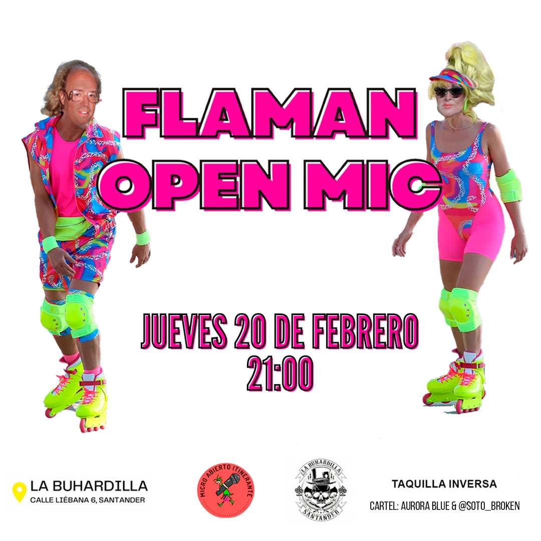Flaman Open Mic en La Buhardilla (C/Liébana, 6) el jueves 20 de febrero a las 21:00 h.