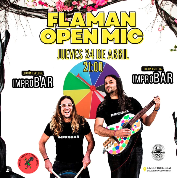 Flaman Open Mic en La Buhardilla (C/Liébana, 6) el jueves 24 de abril a las 21:00 h.