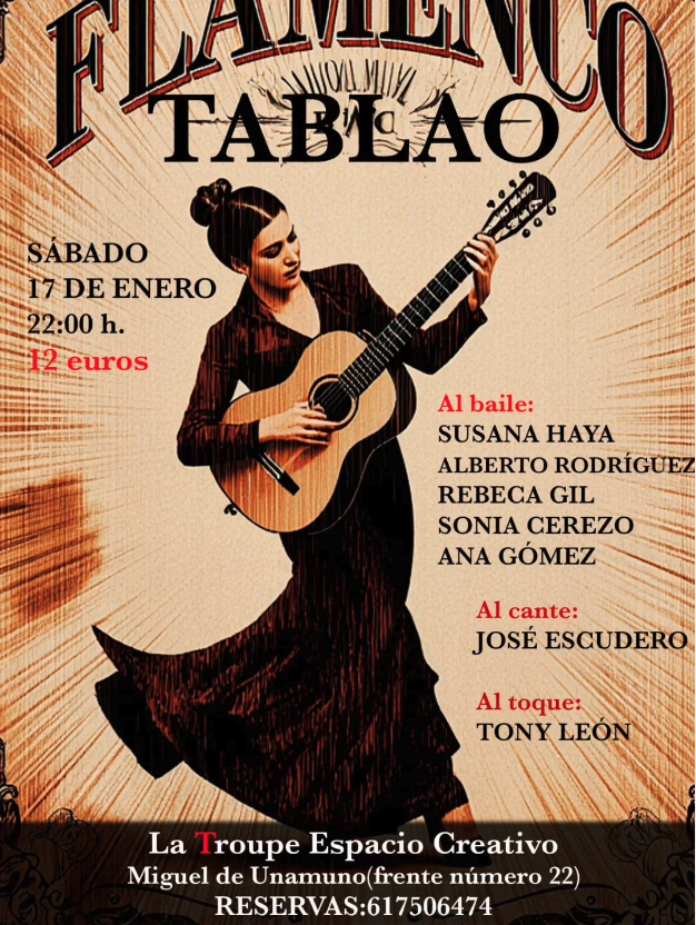 Este sábado 17 de enero, a las 22:00 horas, La Troupe calienta el invierno con su Flamenco Tablao.