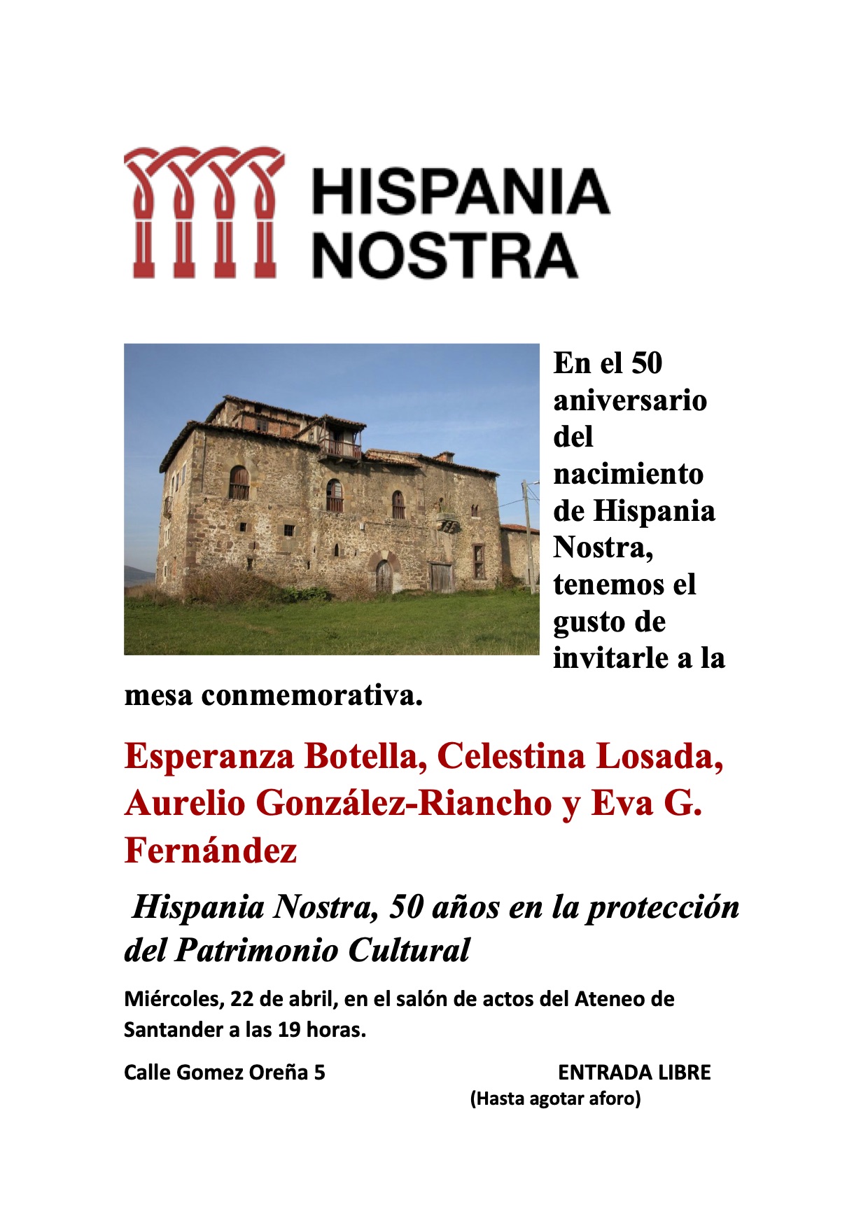 Mesa conmemorativa del 50 aniversario del nacimiento de Hispania Nostra bajo el título Hispania Nostra, 50 años en la protección del Patrimonio Cultural.