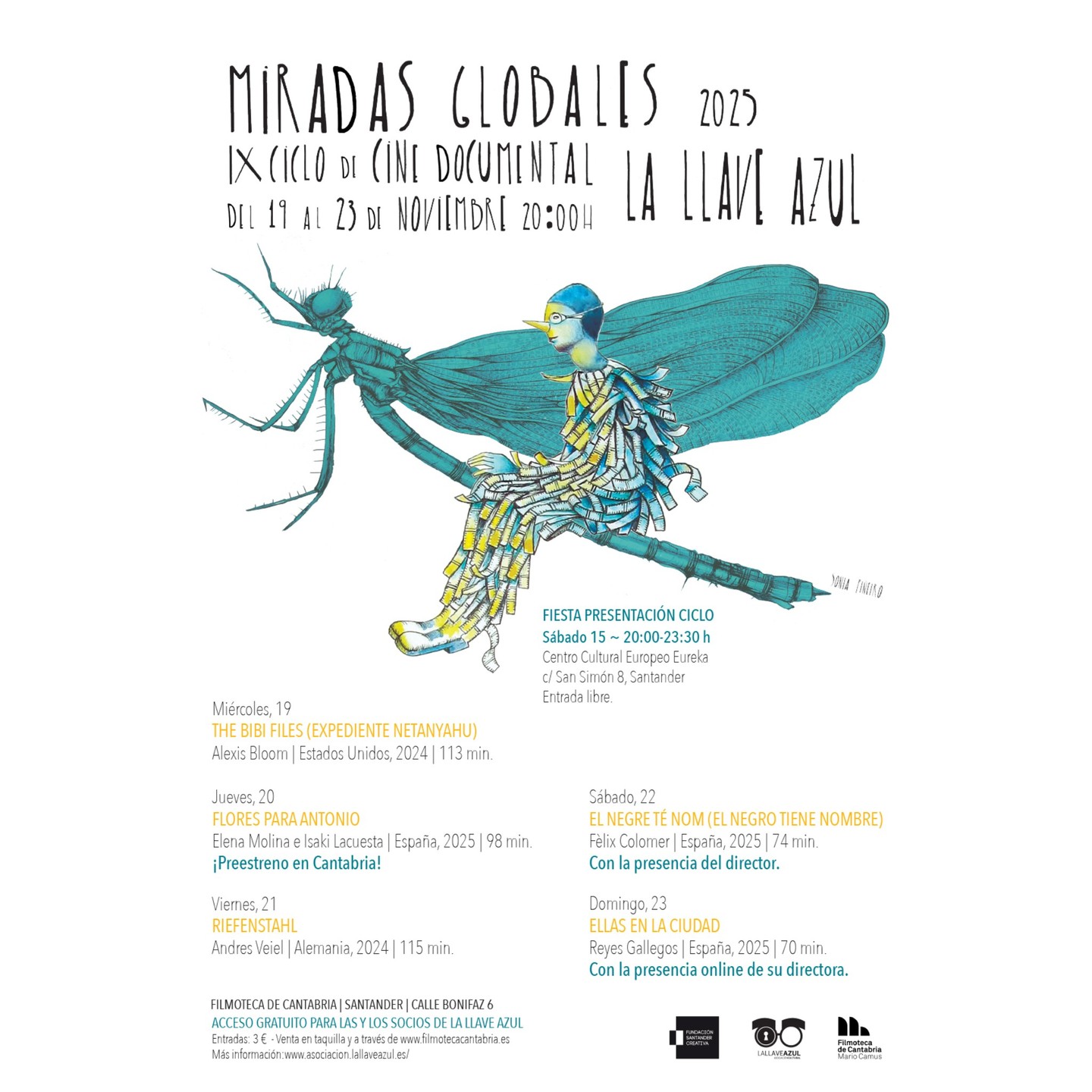 La novena edición del ciclo de cine documental “Miradas globales”, una iniciativa de la asociación La Llave Azul reconocida en la convocatoria de subvenciones públicas de la Fundación Santander Creativa (FSC), proyectará del 19 al 23 de noviembre en la Filmoteca cinco películas nunca antes vistas en Cantabria para que reflexionemos sobre cuestiones sociales, culturales y medioambientales a través del cine.