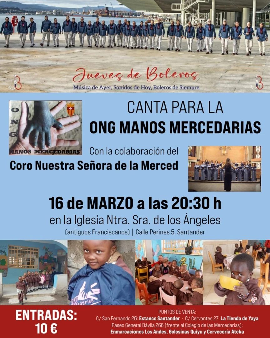 La agrupación musical Jueves de Boleros ofrece un concierto solidario en favor de la ONG Manos Mercedarias. Para la actuación, contarán con la colaboración del Coro Nuestra Señora de la Merced.