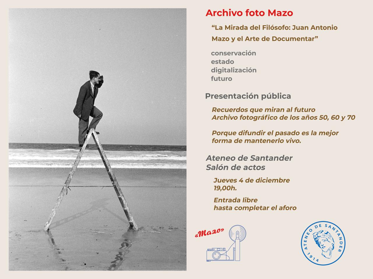 El Ateneo de Santander dedica esta sesión al Archivo Foto Mazo bajo el título “La Mirada del Filósofo: Juan Antonio Mazo y el Arte de Documentar”. Se abordará la conservación y el estado del material y las perspectivas para el futuro.