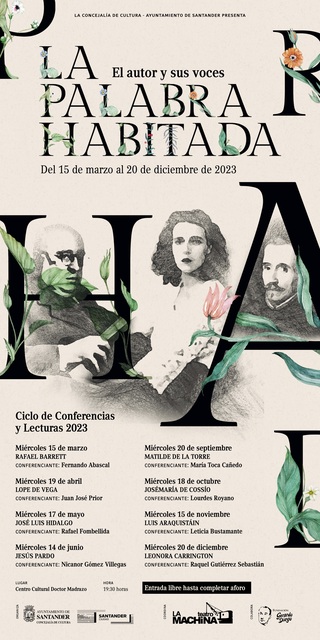 A lo largo del 2023, La Palabra Habitada quiere dar voz y morada a ocho escritores, la mayor parte de ellos nacidos en Cantabria, como Rafael Barrett, José Luis Hidalgo, Matilde de la Torre, Jesús Pardo o Luis Araquistáin, o vinculados a nuestra comunidad, como el madrileño Félix Lope de Vega, el vallisoletano José María de Cossío y la escritora y pintora británica Leonora Carrington.