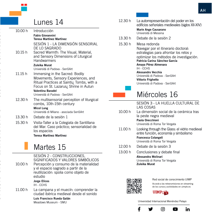 El curso se llevará a cabo gracias a la colaboración entre la antigua Plataforma Temática Interdisciplinar del CSIC Historia Social y Cultural del Mediterráneo. Contextos locales y dinámicas globales (PTI-MEDhis) y el proyecto ERC SensArt. The Sensuous Appeal of the Holy. Sensory Agency of Sacred Art and Somatised Spiritual Experiences in Medieval Europe (12th-15th Century) (no. 950248), dirigido por Zuleika Murat, de la Universidad de Padova. Participarán como docentes investigadores de ambos equipos, junto con destacados especialistas de otros centros académicos europeos. Esta iniciativa educativa busca dar continuidad a la línea iniciada con el curso de verano de 2022, organizado por la antigua plataforma MEDhis, avanzando en la investigación y la divulgación académica. Su objetivo es enriquecer e innovar la oferta formativa, fomentando el progreso en este ámbito.