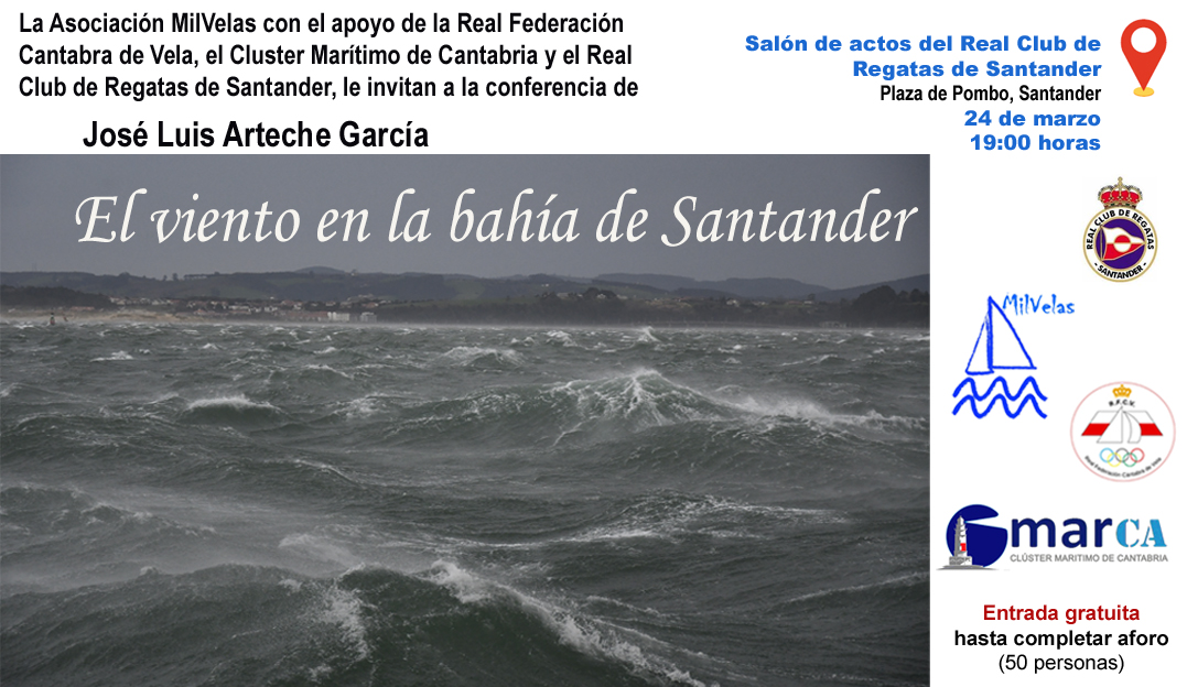 La Asociación MilVelas, con el apoyo de la Real Federación Cántabra de Vela, el Clúster Marítimo y el Real Club de Regatas, organizan la charla "Los vientos en la bahía de Santander", encuadrada en el ciclo "Paisajes de la Bahía" y coincidente con el Día Meteorológico Mundial 2025