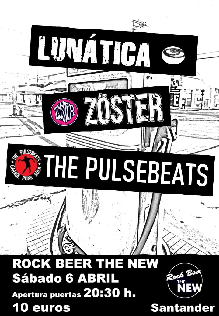 Conciertos de las bandas Lunática, Zöster y The Pulsebeats en la sala Rock Beer the New el 6 de abril a las 20:30 horas.